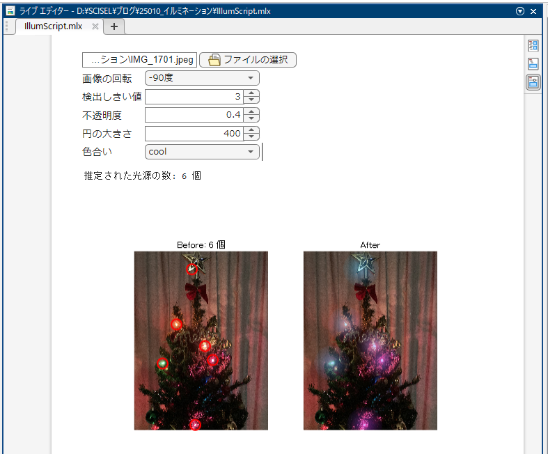 趣味案件ですが、MATLABでイルミネーションの色を変えるライブスクリプトを作ってみました。